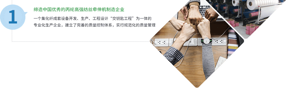 公司致力于制造質量上乘的產品,優質的售后服務。產品為國內眾多企業服務,并遠銷東南亞、東歐及南美。我們期待與海內外客戶廣泛合作,共創化纖工程新輝煌。